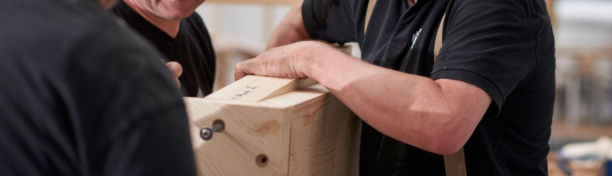 Im nächsten Schritt erfolgt unter Einsatz hochmoderner Lasertechnik zunächst die Erstellung der Treppenrohlinge im Zuschnitt. Diese werden im Anschluss auf einer unserer drei CNC-Bearbeitungsmaschinen zehntelgenau bearbeitet, bevor sie daraufhin an den Bankraum - dem eigentlichen "Herzstück" der Schreinerei - zur weiteren Bearbeitung übergeben werden. Hier finden weitere anstehende, manuelle Arbeiten statt, die die Treppen- und Geländerteile in die letztlich gewünschte Form bringen. Abschließend werden die Oberflächen fein geschliffen und mittels UV-Lack in der vollautomatischen Lackieranlage seidenmatt veredelt.