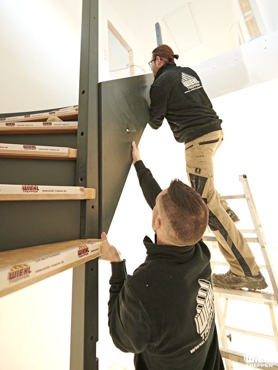 Klassisch montiert werden Treppen in Einzelteilen in der Regel nach Einbringen des Estrichs. Dafür stehen Ihnen unsere kompetenten und erfahrenen Montage-Teams gerne zur Verfügung.