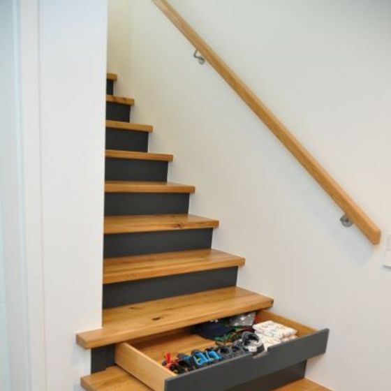 Stufenschubladen mit Griffaussparung in Antrittsstufen