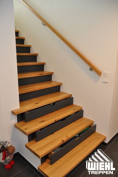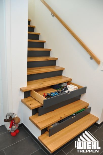 Stufenschubladen mit Griffaussparung in Antrittsstufen